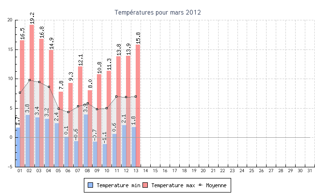 | 02 | 3.8 °C | 19.2 °C | 9.8 °C | 1.2 km/h (11.9 km/h) | SSO |